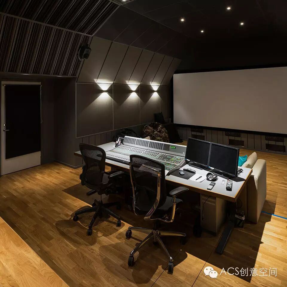 Chimney的主要工作区域位于建筑的七层,改建不能动建筑结构,同时因为后期处理工作的专业性质,光学构件和吸音板必须在不影响结构的基础下被安装。除了办公空间之外,工作室还拥有一流的电影院,录音师,编辑室,混音室等等专业工作空间,这些专业工作空间都被容纳在轻型的隔声空间之中。
