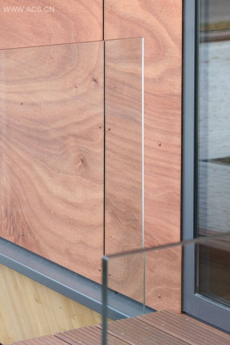 木材内芯置有轻钢结构系统,安装在建筑的六个面,并加盖纤维水泥板制作的保护薄膜。