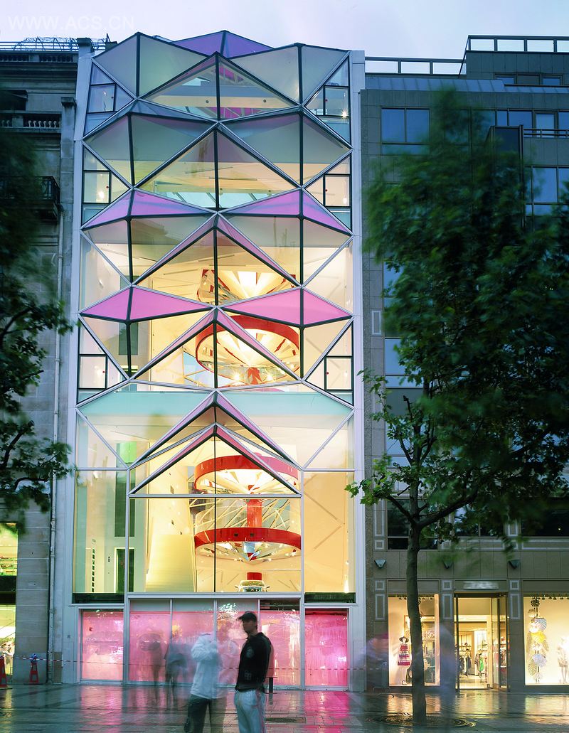这个全新的雪铁龙汽车旗舰展厅位于巴黎香榭丽舍大街42号,法国雪铁龙汽车公司从上世纪20年代起,其创办人安德鲁·雪铁龙就在此开办了汽车店并拥有了这个地方的产权。最初的展厅非常漂亮,其内部设计极具戏剧张力,矩形的玻璃立面拥有着优美的比例,整个设计极具现代化和极简抽象艺术的风格。