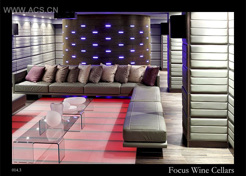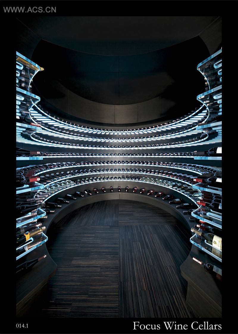 这间私人酒窖有一个独特的设计,带给人一种梦幻般的感觉。酒瓶放置在从天花板到地板上的300度环形阵列的数控切割玻璃搁架上。这种超现代的布置与巧妙隐藏的LED照明相结合,使酒窖的内部设计呈现出一种神秘感。从外面看,酒窖是客厅后面一个奇怪的发光的圆筒状物。巧妙的细节及精致的做工,确保了内部理想气候条件得以维持。该酒窖是FWC将风格与技术完美结合的呈现。