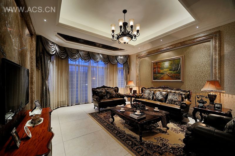 - 主要材料:防古砖、大理石、壁布、玻璃、马赛克、古典油画