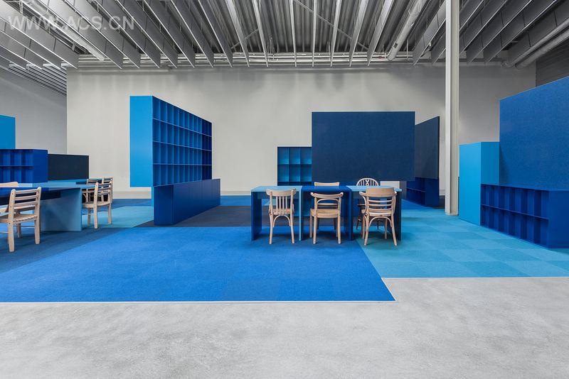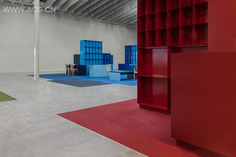 Combiwerk的每一个人都独一无二。这一点以抽象的方式呈现于室内主题。定制家具包含许多“盒子”,每位使用者可以在这里诉说自己的故事。涂以不同色彩并铺以不同地毯,使这个灰色世界多了七彩空间。
