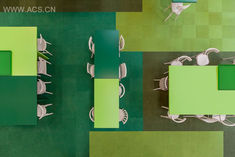 项目由VMX建筑事务所负责设计,占地8500平方米,包括4000平方米办公区、公司食堂、事业广场、入口以及大厅。i29室内建筑事务所担当项目顾问。中心区域为大型中庭,设有食堂、事业广场和接待区。建筑本身是全封闭式的,呈灰色方块形状。灰色也运用于室内的墙体、地板和天花板。进入室内,斑斓色彩将带给你惊喜。这些色彩在空间内随意搭配,只有进入室内才能领略。宛如进入童话一般,这里是一座五彩纷呈、活力四射的秘密花园。外观单一而室内丰富,形成完美对比。