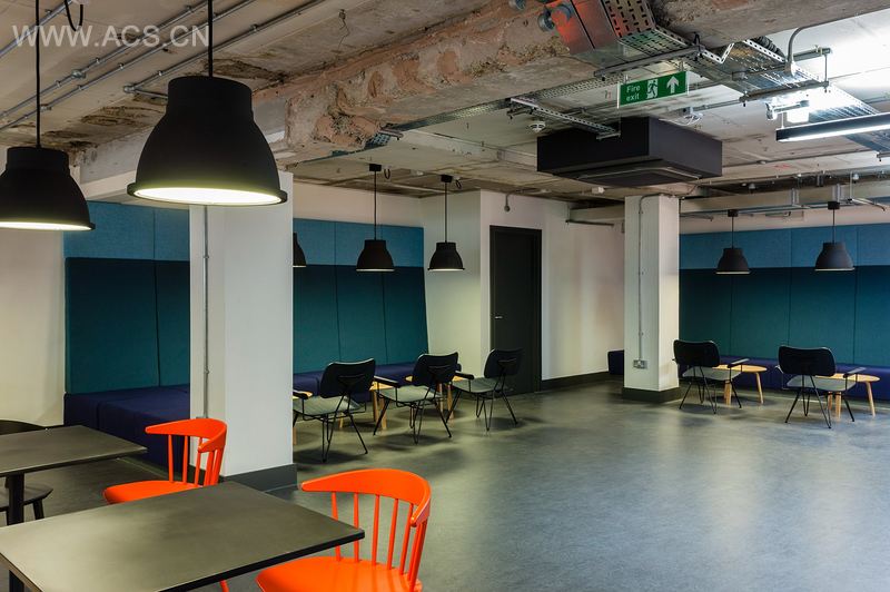 设计重心是打通底层和地下层的空间,将其变为一系列社交空间,包括接待区、非正式会客区、剧场、咖啡区以及工作间等。