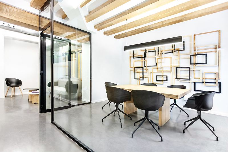 首先,旧的横梁被保留,并成为本案的重要元素。木材是办公空间的主角,虽然不够引人注目,却足以传达Zapata y Herrera的核心价值观。灰色充当过渡色,象征沉稳和专业,黑色则彰显优雅与严肃,正如Zapata y Herrera的职业态度。
