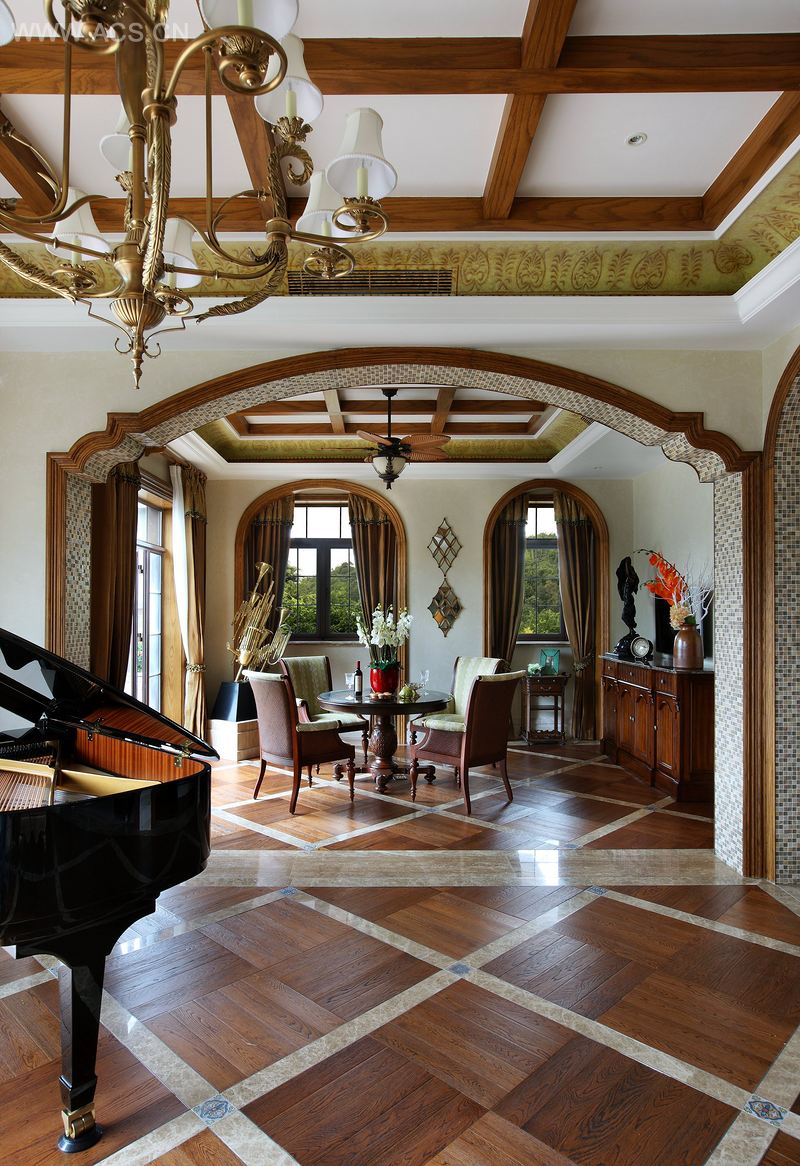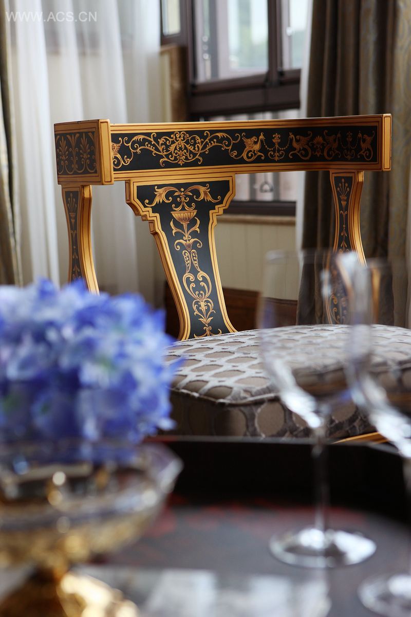陈设设计充分体现历史韵味及异域风格,搭配了美式古典家具、原木家具及不同感觉的摆件,包括东南亚的木雕,仿古的美式铜灯,突尼斯的艺术品,伊朗的手工地毯……混搭了一些具有东方风格的小型家具,使室内呈现一种多元化的艺术品位。