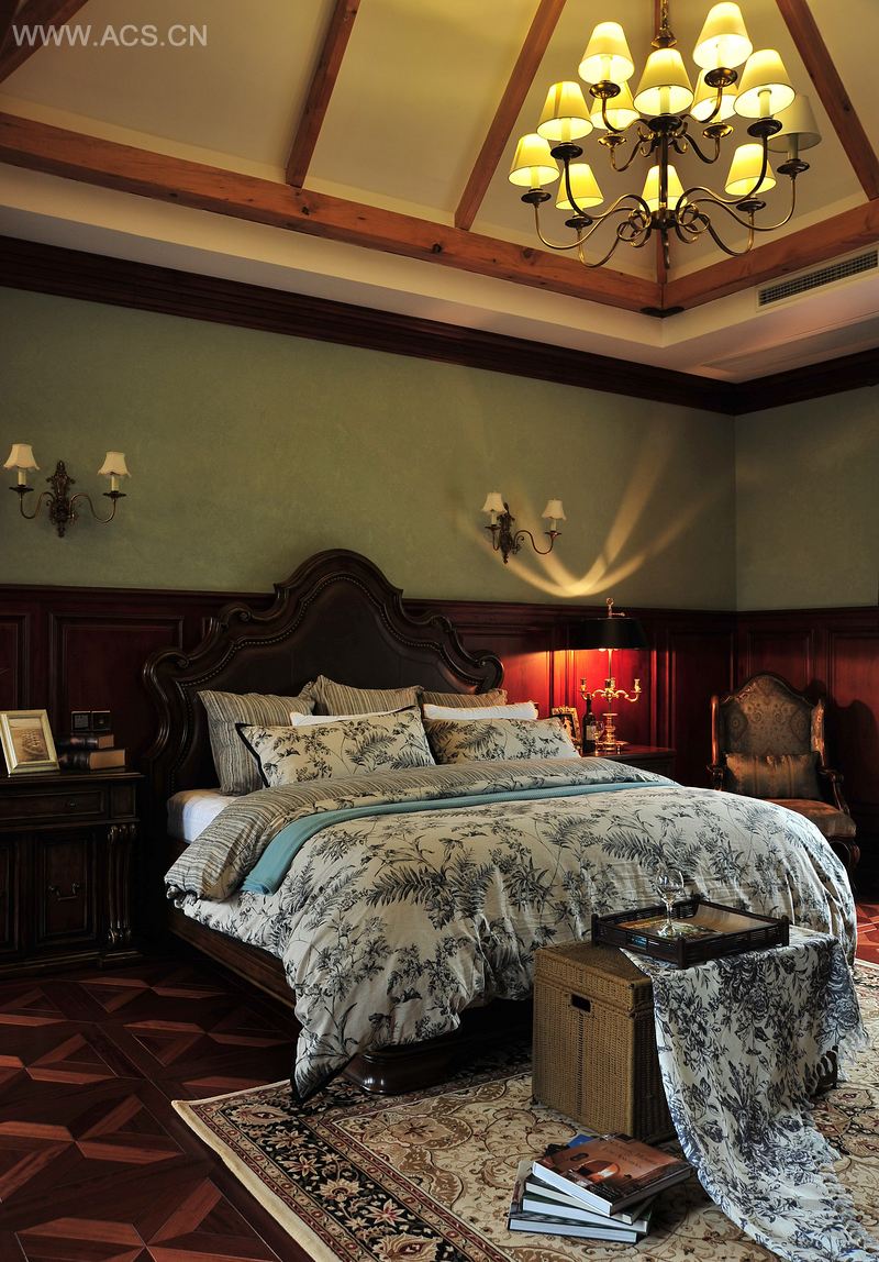 - 主要材料:大理石、进口仿古砖、实木地板、原木、质感漆、铁艺