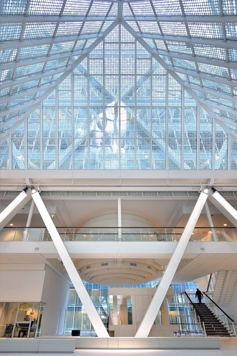 建筑的设计自成一派,却与现有建筑群相融,包括颜色和环境,对原有建筑进行新的诠释。服务楼位于上升的平面,中央有信息广场,与集多种公共职能于一体的办公楼相连接。