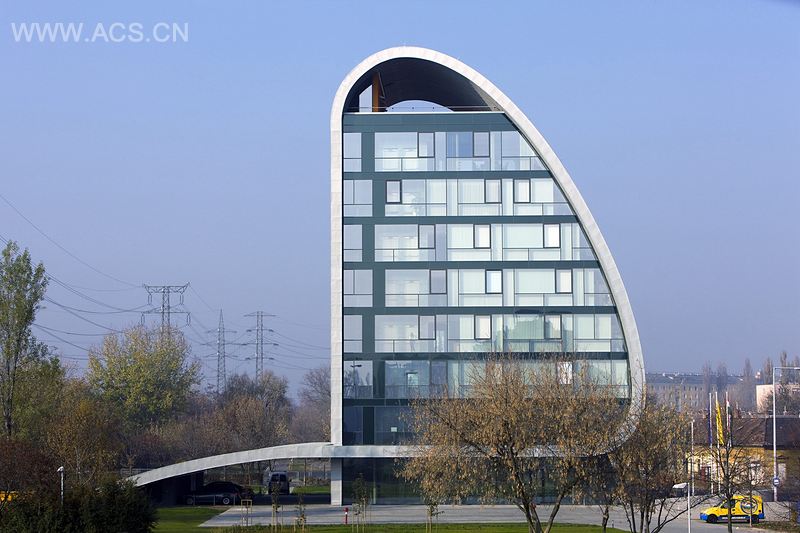 Vikár & Lukács建筑工作室赢得竞标,为匈牙利Autoklub设计新总部。建筑的主外观好似一根缎带,缠绕着七层办公空间,同时呈现字母“a”的形状。由于靠近多瑙河大桥,地方官员希望有一座地标建筑,为开车来到Ujpest地区的人们指引方向。