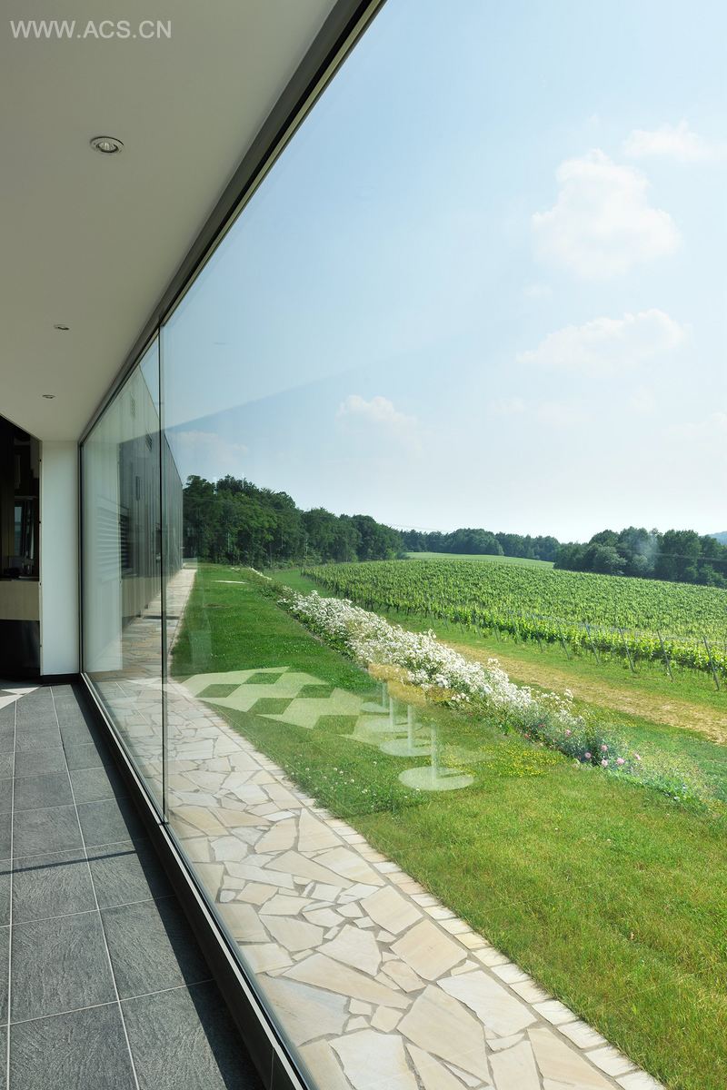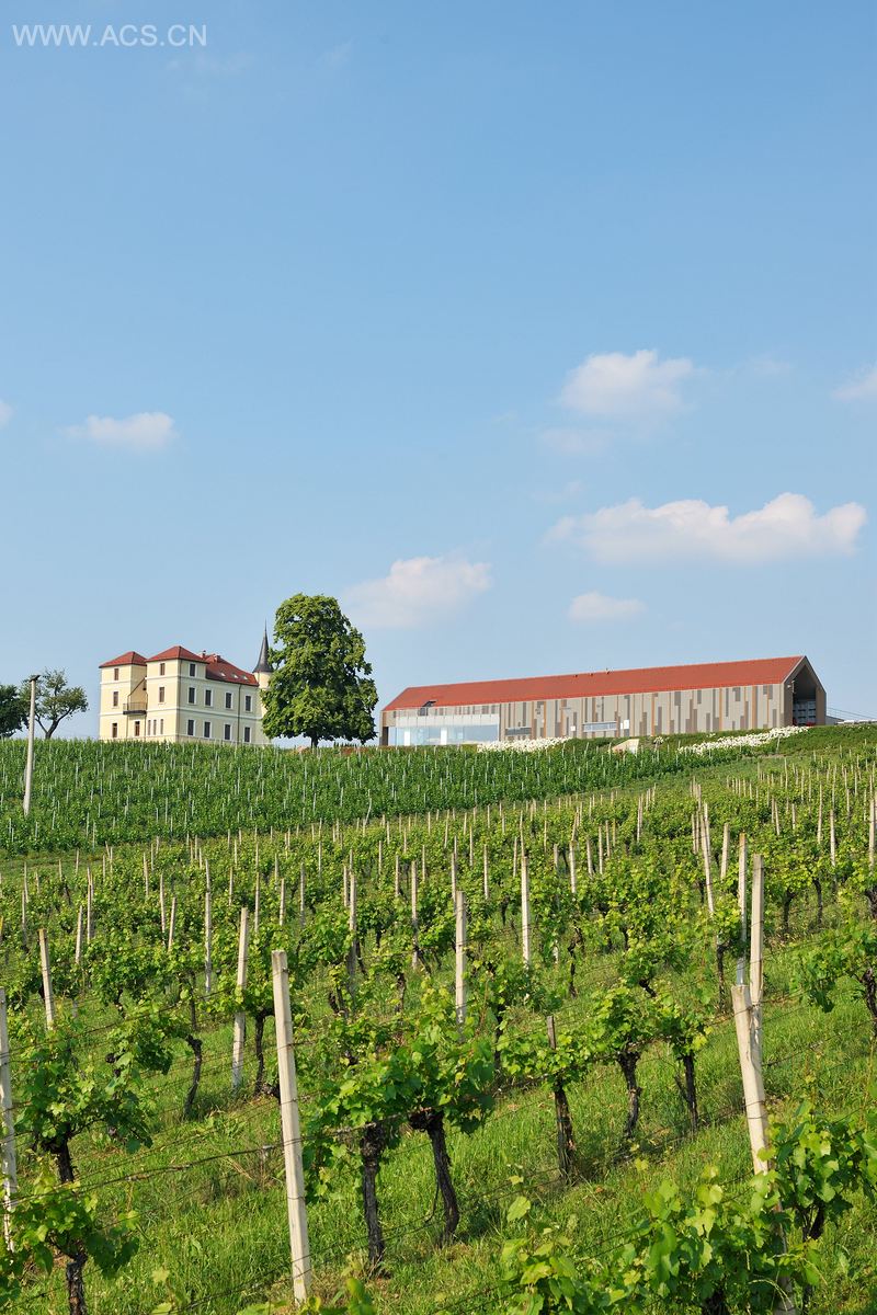这栋大楼的外形是根据当地的地形而设计的,形体构成与相邻的庄园和老椴树相匹配。破碎的门面设置了很多竖条,与葡萄树的支架相呼应。大楼西侧有一个全景窗,客户在接待区可以看到整个葡萄园。