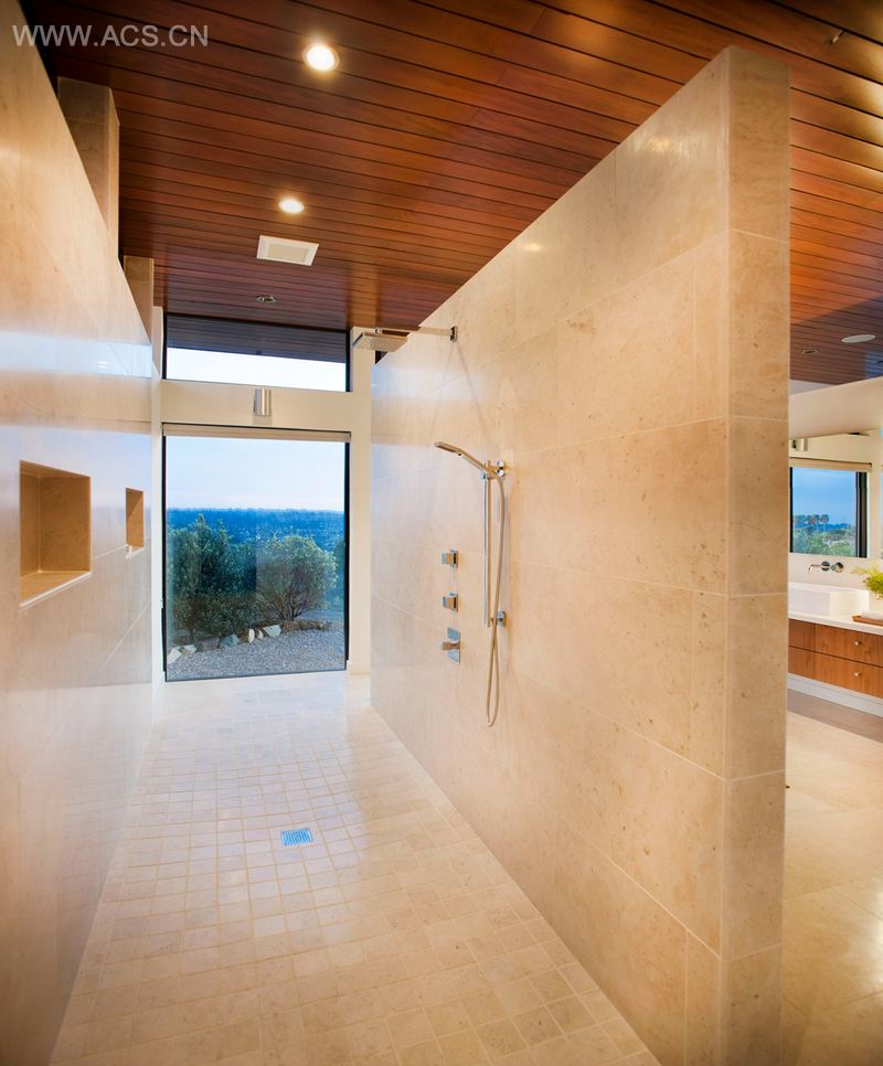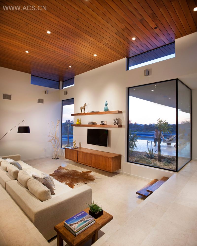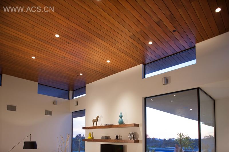 该物业如同一块空白的画布,因此设计师可以充分发挥其设计才能,完美匹配客户的要求。项目的设计定位是“20 世纪中期现代住宅”。该住宅通过了美国国际绿色建筑认证体系金牌认证,具备绿色环保的特点。设计师面临的第一个难题是住宅的位置。虽然场地能够看见奥利弗海因区美丽的景观,但因其与另外一个大型住宅以及一个住宅区相邻,故而也面临隐私保护的问题。住宅的设计原则是尽量将景观最大化,保持其隐私性的同时,实现大量的自然采光和通风。