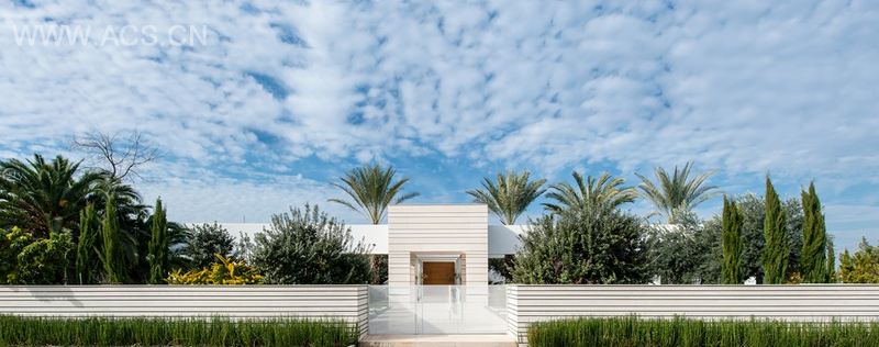 Here the house is characterized by maximal openness, of wide and large openings which surround the swimming pool and the plot. In order to provide natural and comfortable shading, built pergolas and coupling beams were designed as an integral part of the building. These flow with the structure and define the landscape as segments of photographs.
