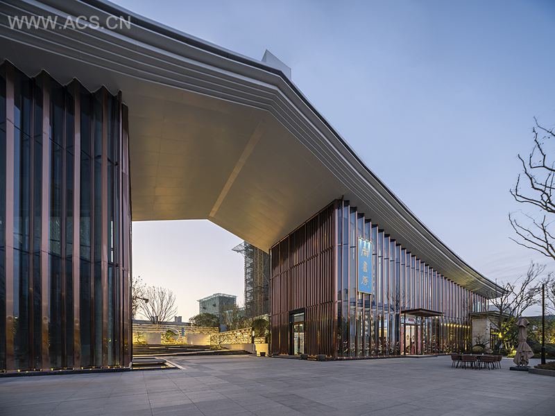 尚书房营销中心位于小区入口处,与小区大门融为一体,整个大门形似一本翻开的书,抒写着传统归家的礼序。萃取镇江地域文化,将传统气韵和山水诗意融入现代美学场景,打造差异化的沉浸式体验空间,是本次设计的主旨。设计团队以《恭录适生君和玉》为设计基调,探索「依山傍水院门开,学子如云盛楚材,人杰地灵非妄语,尊师重教莫徘徊」的书香语境,空间恍若一副东方气韵的艺术长卷徐徐展开……