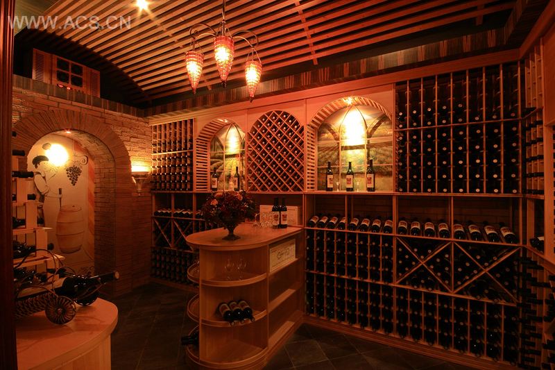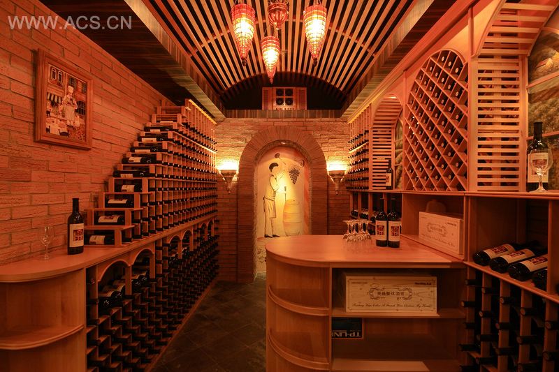 依据经典老片《云中漫步》——电影里大片大片的美丽的葡萄园印象,尤其是半夜时分的驱霜场面:人们燃起行行篝火,披戴着纸扎的宛如蝴蝶的大翅膀,优雅轻柔地慢慢舞动。而男女主角在霜雾火光中翩翩起舞,含情脉脉……由夜晚联想到了夜晚的“星空”,把“星空”的概念搬到酒窖,再通过田园风光的酒窖细节配合……