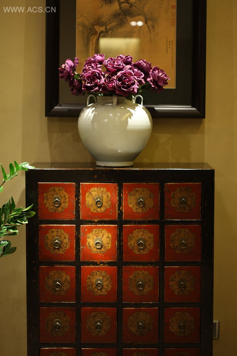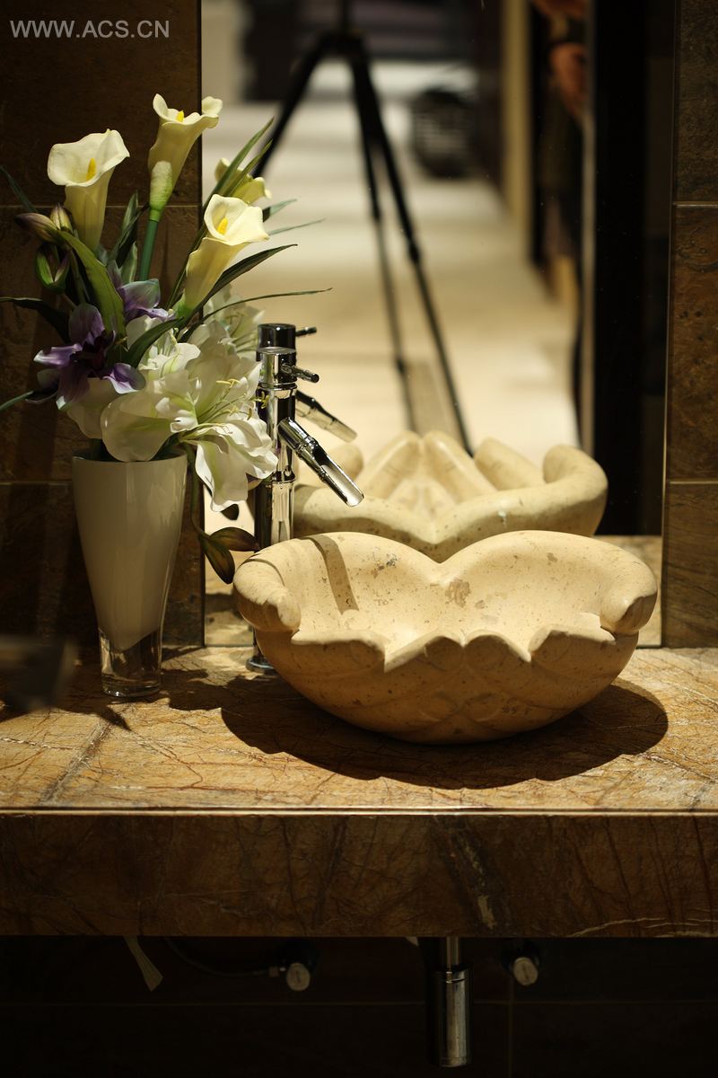 庄子曰:“儵鱼出游从容,是鱼之乐也?”而现代人的理想栖居状态又何尝不是那种从容和悠闲!为此,本案特设了一个1.3米的草缸,作为表现这种生活意境的道具,大部分的材质围绕本案主题,都选用了粗糙的自然材质,包括哑面的洞石、做了仿古精磨的地面米黄材质,榆木板材,水曲柳实木板,树根等等。