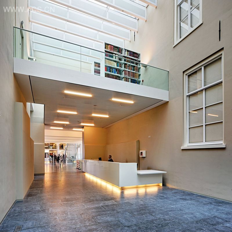 进入到图书馆的入口是整个建筑群的中心,它被重新设计并布局。它是现有建筑的一个补充结构,提高了建筑的传统特征并为乌得勒支大学创造了一种新的现代面貌。