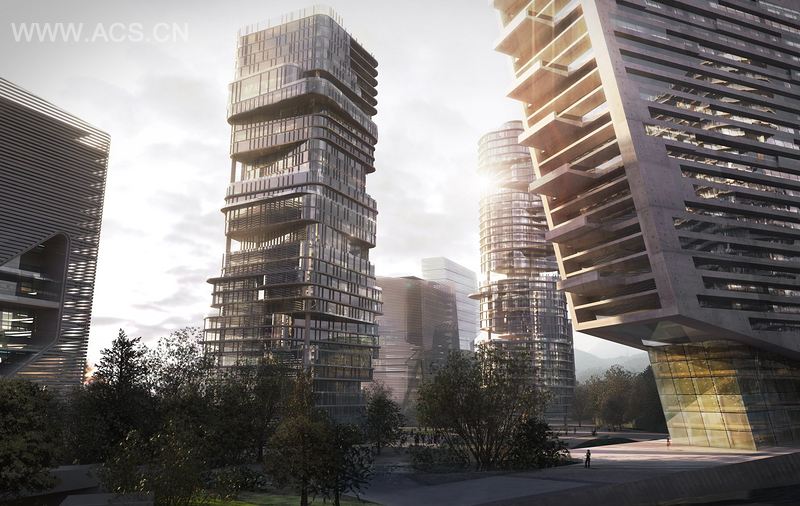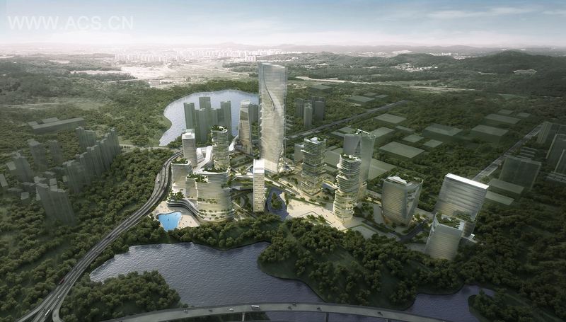 星河雅宝高科技企业总部园区紧邻中国深圳福田中心区,总占地面积约65公顷,总建筑超过105万平方米,由18栋塔100-300米高的塔楼、一个5星级酒店,3栋住宅塔楼,1个购物中心和一个32公顷的公园组成。主要设计概念是试图将这个综合建筑体融入复杂的自然景观。建筑群在西南边展示了强烈的城市风格,向东北方向的湖移动的同时开始融入自然。塔楼外延的的阳台种植了植物。西立面上安装的藻类管也带来了自然扩散的绿色纹理到建筑上。外部线性屏风进一步扩展到塔的边缘,为建筑挡住夏季的烈日。每栋塔楼有一个屋顶花园来帮助减少热岛效应。该建筑由两个地标性塔楼组成。第一个是坐落在一条小溪边缘的300米高的塔。第二个是位于两条快车道交叉点的购物中心。针对快车道,一座建在快车道路边的220米高塔将300米高塔和购物中心融为一体,成为400米长度的标志性元素。建筑的外观设计可以一天24小时中和空气污染,藻类能产生氧气、有机肥并能净化脏水,地下室将室外空气自然冷却后输送到室外庭院。该建筑群充分利用科技重塑微气候的温度和空气质量。