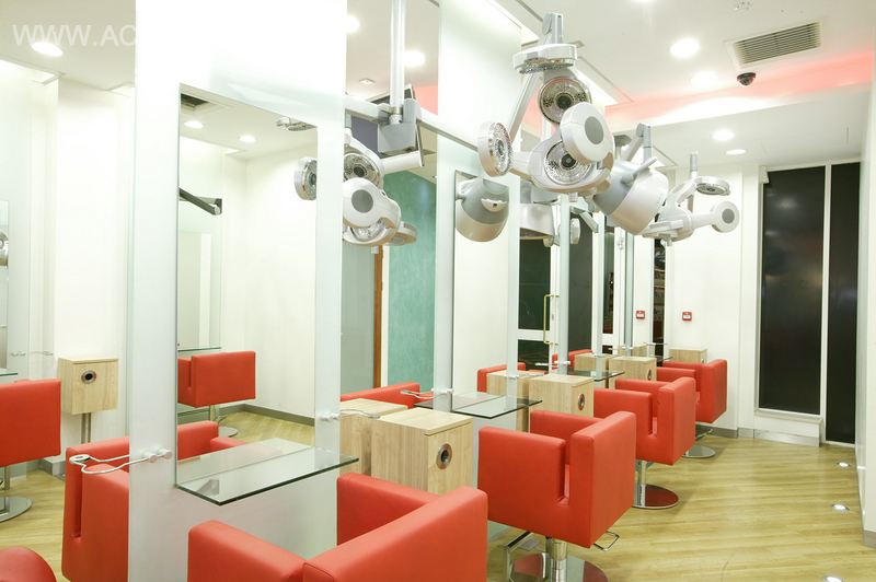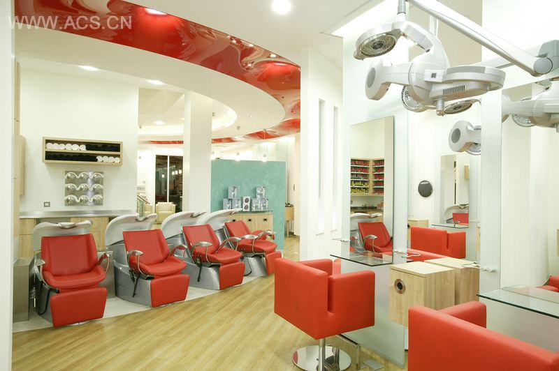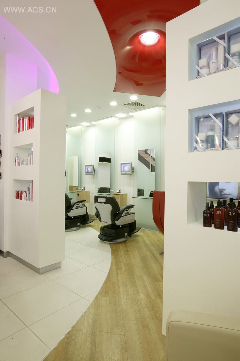 位于英国富饶的索利哈尔的Cudmore & Co是一家充满活力、氛围极佳的美容美发沙龙。设计大纲旨在打造一间与众不同的沙龙并挑战沙龙室内的最佳空间设计。设计亮点在于曲面墙壁,层次不同的天花板,3米的毛玻璃面板,颜色多变的色彩以及红色主导色贯穿于空间带来的深刻效果。整个设计的中心点在于入口区域,内嵌灯具的火红的天花延伸开去,环绕着玻璃和可丽耐大理石制成的前台。