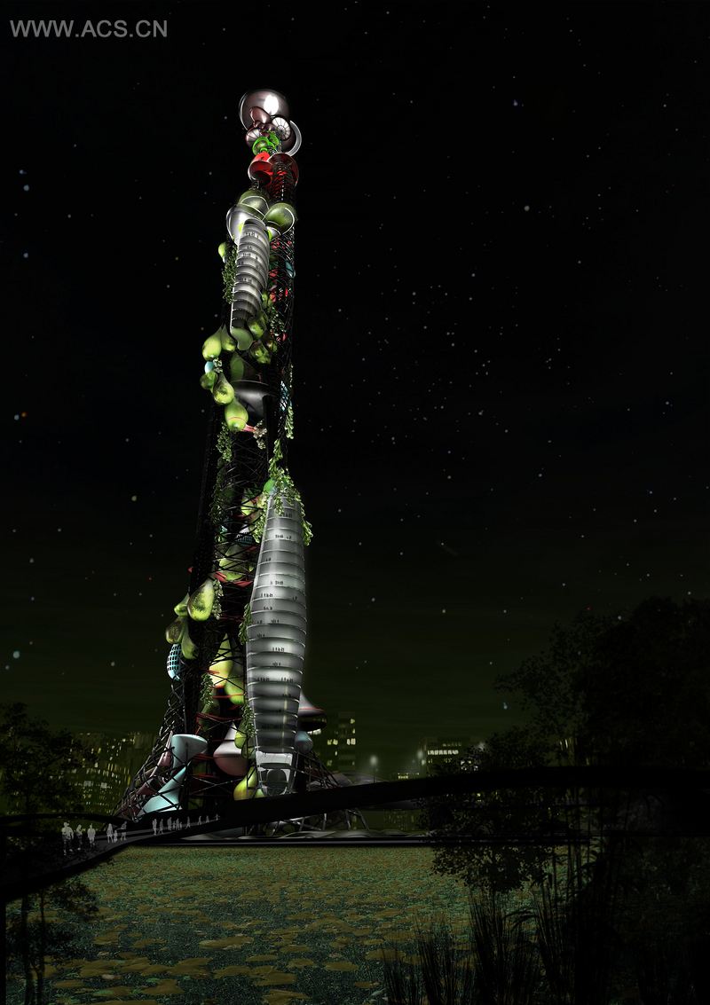 一个极好的塔不单单是站在那里:它必须揭示它的秘密和采取不同的特征作为它奠定公开这些秘密基础。如果你慢慢欣赏,它必须有某种特征或氛围;如果你快速移动,也会看到不同的特征。它希望让你深入了解它,让你享受平凡以及深刻的时刻;此外,在地面层,它必须铭刻自己的综合氛围。塔养育藻类,每个人都可以看到它是一个可持续的环保产业。