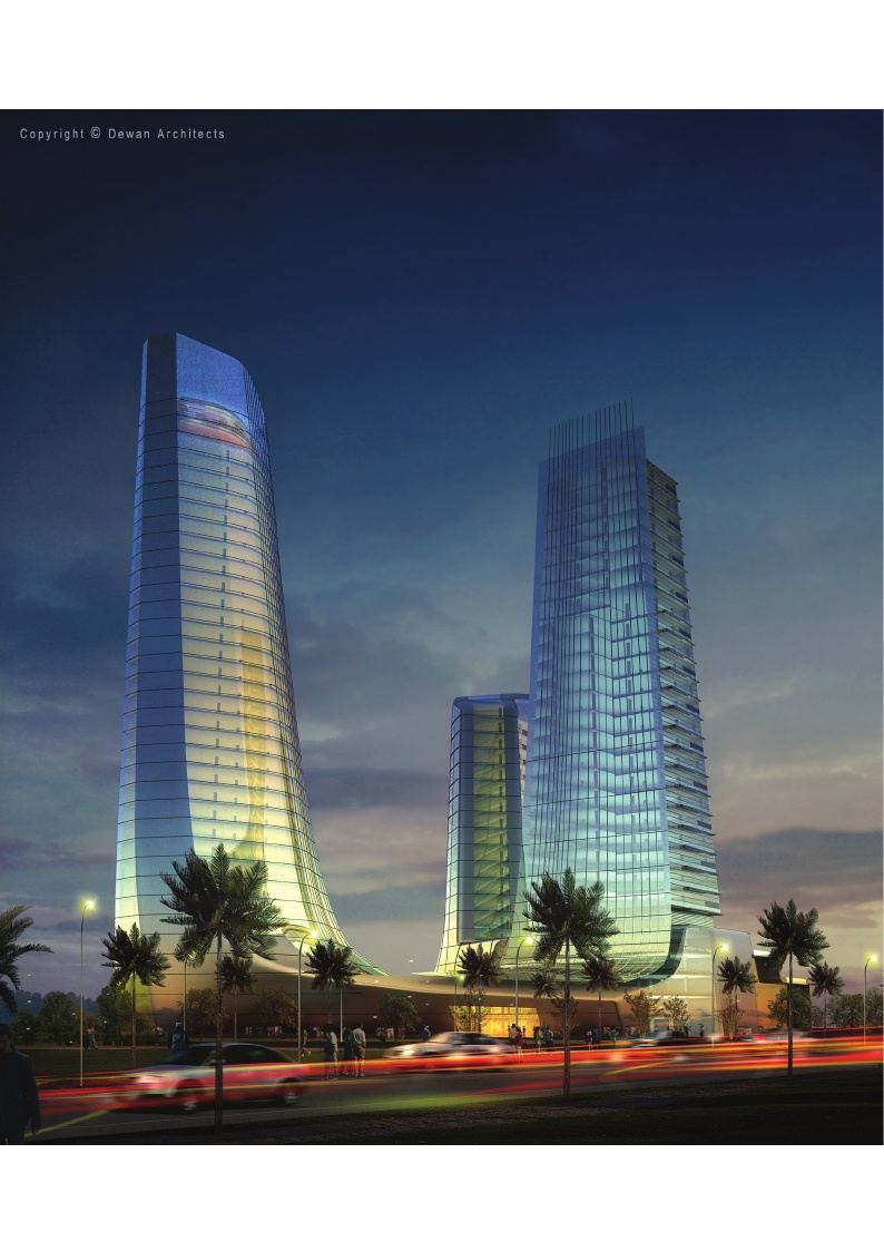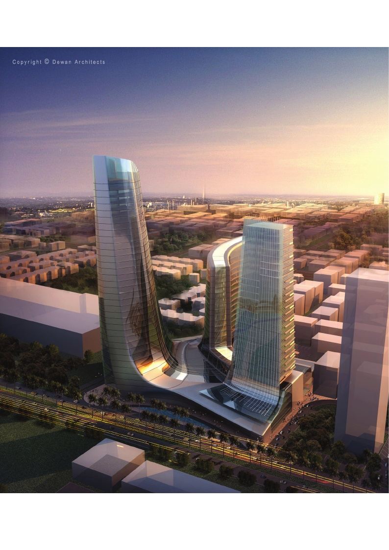 国际资金贸易(ICT),阿联酋领先的房地产开发商,委托Dewan担当其著名的城市综合体,位于阿布扎比市AI卡里迪亚区的联合广场首席设计顾问。三座连成一体的塔楼有独特的曲线的形状,象征水从城市街道往海边方向的优雅流动和有机上升。 联合广场由G+16写字楼塔(81米),不带家具的住宅塔G+14(68米)和带家具的住宅塔G+18(95米)组成,总建筑面积113625平方米。设计目标是通过打造一个人们居住、工作和购物的城市综合体 重新赋予这个坐落在阿布扎比滨海特区新的能量。