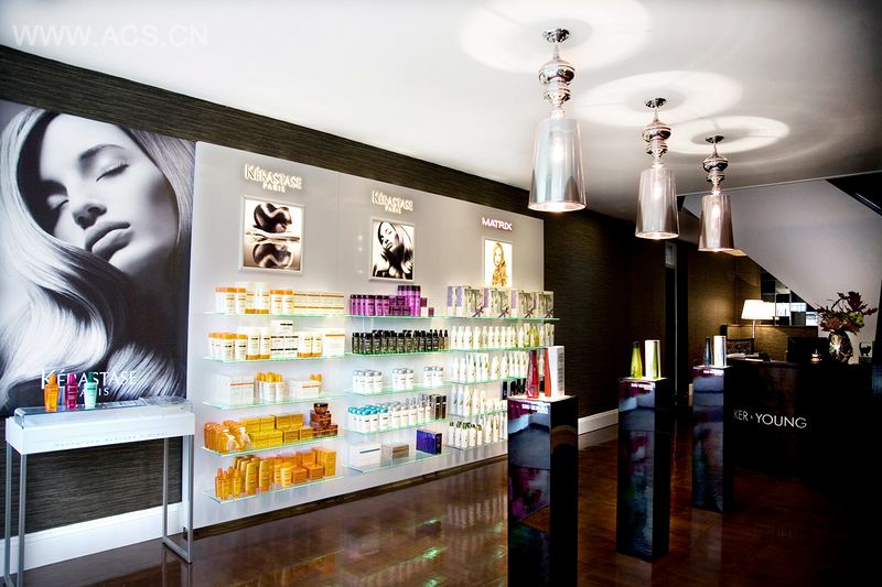 从悬挂于洗发区的施华洛世奇水晶到大面积使用的具有金属质感的植绒墙纸,这家美发沙龙具有丰富的内在表现。