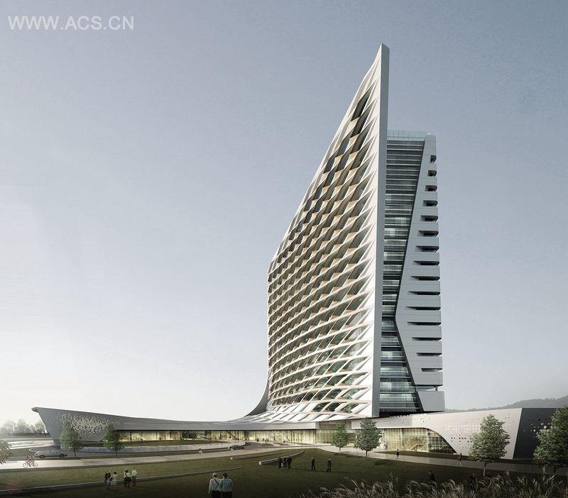 该项目的目标是为LH(韩国土地和房屋公司)创建一个新的可持续的综合体。6.5万平方米的项目由行政办公室、公共服务、福利和文化设施如体育设施、展览厅、教室、演播室、图书馆、信用合作社、食堂、儿童中心和会议中心组成。“地接天”的设计理念反映了LH的品牌形象,通过创造一栋建筑 视觉和技术与周边景观协调一致。本项目在微观和宏观上,实现了众多的可持续的方案。该项目位于韩国晋州一个风景河畔的人行道旁,将公共和私人领域(主要是安全原因)融合成一个无缝的组合物,促进平等的环境。公共体育区域位于塔楼南边,体育活动和日常活动都利用自然阳光。LH从事建筑、修缮、土地和房权管理,在韩国与国外都有办事处。