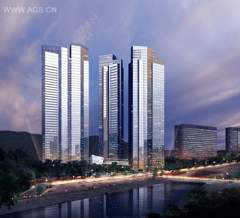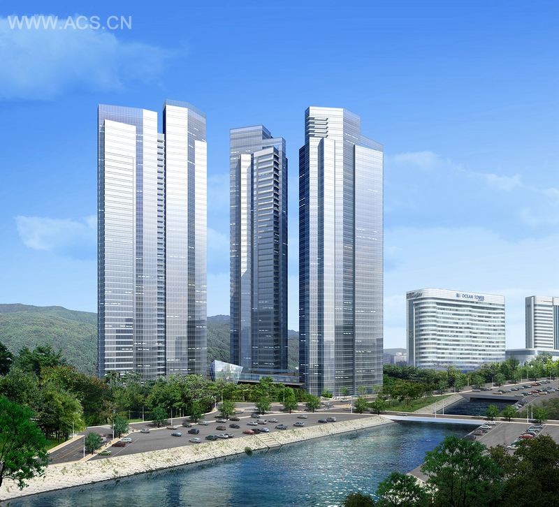 该案与同百岛和海云台沙滩相邻,海岸线和大海直入眼帘。大楼在一个小公园旁边,位于从市区到海云台的必经之路上。三座塔楼下面有一个三层购物中心和体育俱乐部的裙楼,由一个多层透明中庭固定。这些塔群占尽原始海景和邻近山脉的地理优势。
