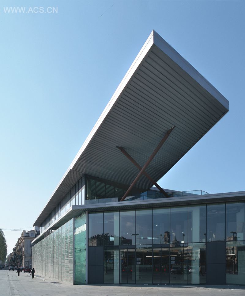 帕拉蒂诺中心位于Porta Palazzo,它是都灵最古老的地区之一。它的改建由福克萨斯建筑事务所负责。项目包含了地下的两层和地上的三层,地下分别为停车场和技术空间,而商业空间和餐馆等都位于上三层。主入口靠近Giulio Cesare和Regina Margherita之间的十字路口 。商业区域沿建筑物的外围分布,中心形成一个广场。各个楼层由三座金属桥连接,它们由一楼中央庭院的11根柱子支撑。棱柱形柱子高达13英尺 。