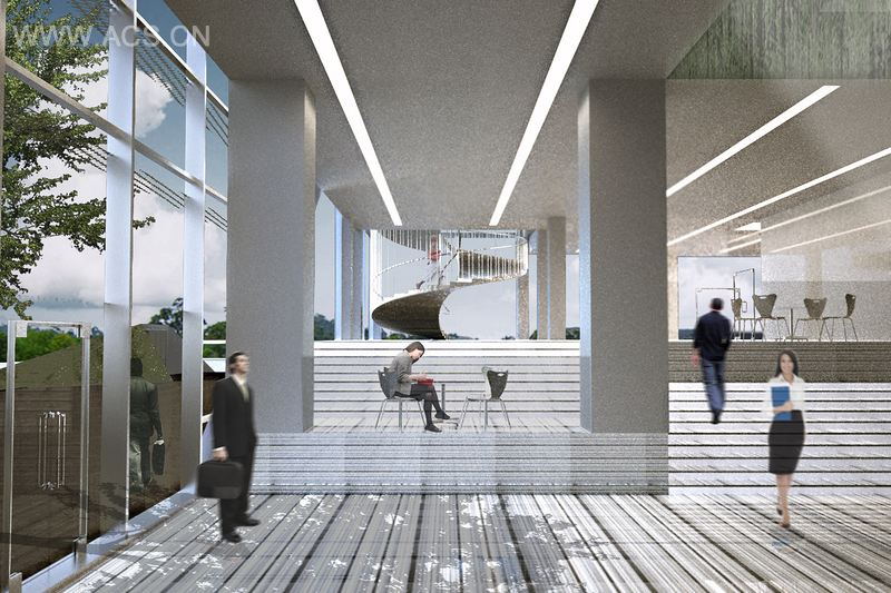 5. 空中休息室(全景观景台、贵宾休息室、空中花园、体育馆)。这些特区服务于 VNTA 总部的不同区域,从一般公众、VNTA 员工、顾问人员到贵宾。通过不同的功能分区的隔离,核心办公区在不损害到 VNTA 的开放、公共关系和相互作用下,可以依然保持较高水平的安全性。