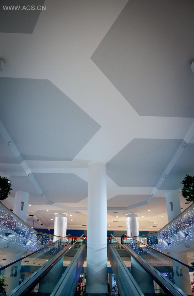 本案占地面积4 000平方米,它的一大特点是它的“蜂窝”布局,天花板上的六角形和地板上的六角形呼应,营造了连贯的视觉效果。