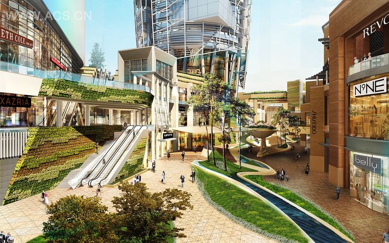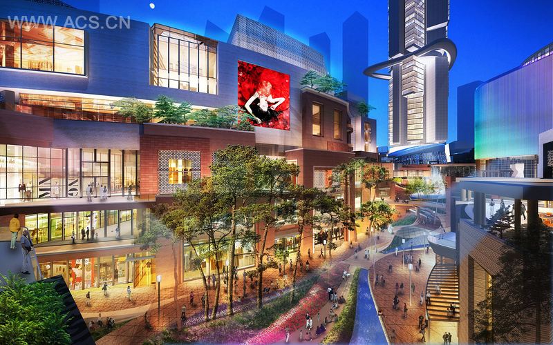 总体规划中心的C-1商业区被命名为龙谷商业区,面积约200 000平方米。它分为3个主要区域:铂金街、大学城和体育生活区。这些区域环绕着郁郁葱葱的公共景观、水景观、户外餐厅、露天剧场、公共聚集区和下沉式花园等。