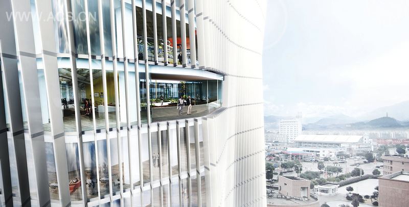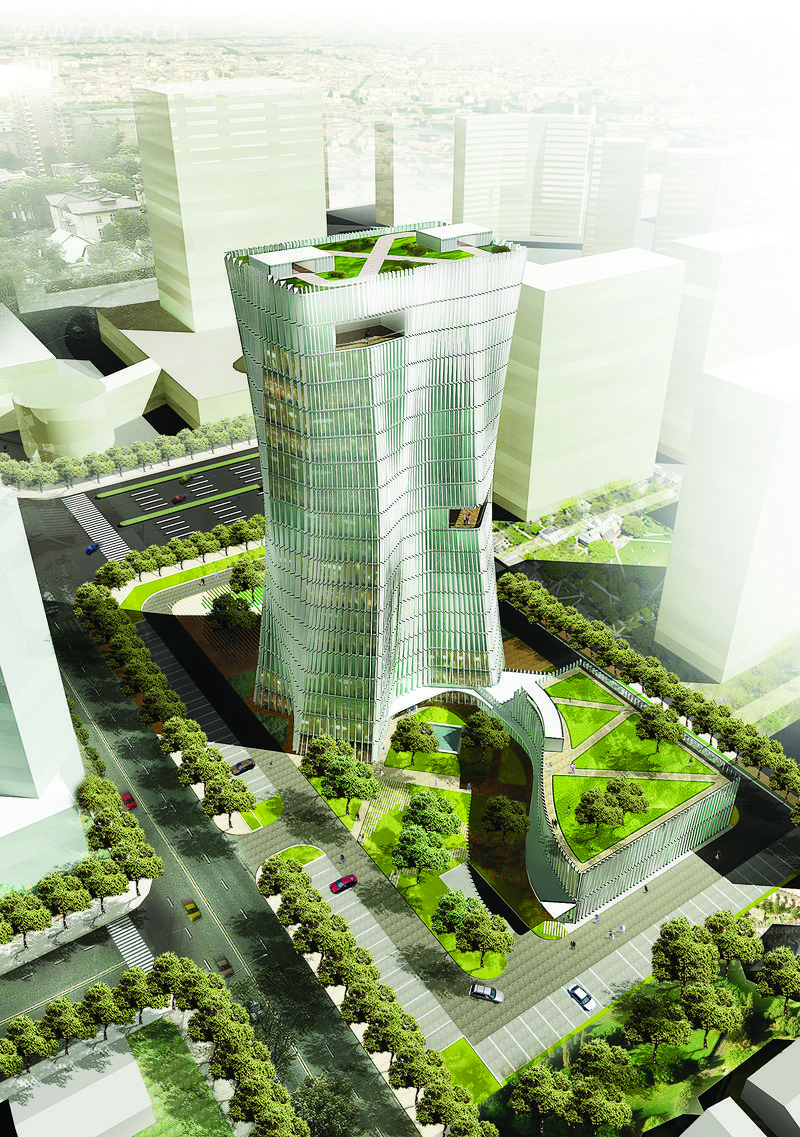 天台电力调度总部的设计概念源于灯塔和流水的意向。该设计抓住了灯塔垂直竖向的动向特征,外部由包裹着如流动的水一般的外表皮,其动态特征使得从每个角度看这个建筑都会有不同的样子。这个建筑有三个中庭的通高空间,它们都是底部向公园敞开,顶部向山景敞开的。该设计还采用了可持续发展策略,热量堆积效果和自然通风,从而使得该案成为激励地区发展的一个风向标。