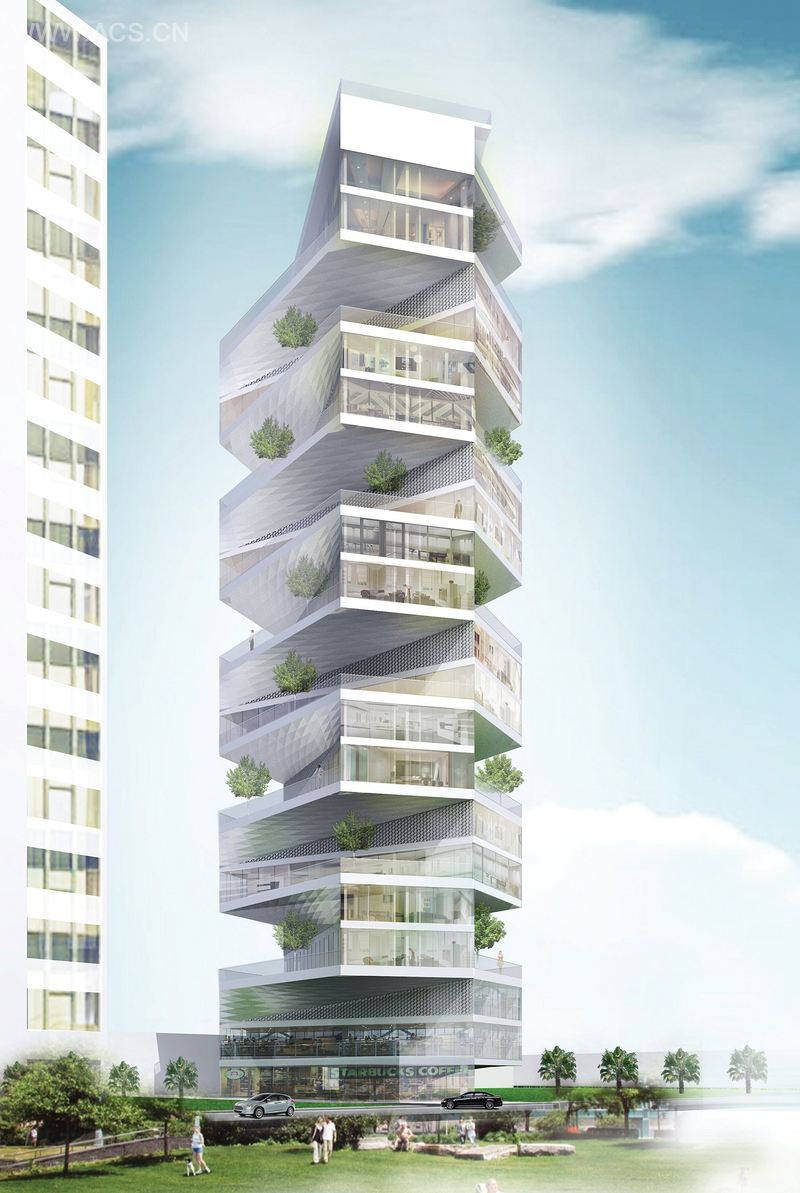 扭动塔,是LYCS为利马最美丽的一个住宅区设计的摩天大楼,是一个国际建筑设计竞赛的参赛项目,该竞赛由ARQUIA,一个对建筑艺术感兴趣的国际开发公司举办。每个单元45度的旋转形成了设计中的十字形和一个线性铰接的建筑,使得每个单元拥有一览无余的,位于塔楼前面的两个公共公园和海洋景观。此外,每个单元被其上下单元阻隔而形成了额外私人空间。每个单元是一套双层别墅,有一个种植花草的阳台和一个带甲板的游泳池。由于几何活动的独特性,每个阳台都可以享受到热带阳光和微风。连接第二层楼板和上层单元的金属片,从其光滑表面融入两个盒状的几何形状的结构中,凸显其使用者的审美观。因而,铰接建筑每个单元,从结构上呈现扭动的外观。网状三角板,与金属片连接,提供额外的遮阳。该岸是当代设计趋势的实验,从此在秘鲁利马的传统或低于标准的城区组织中,以其独特性而引人注目。