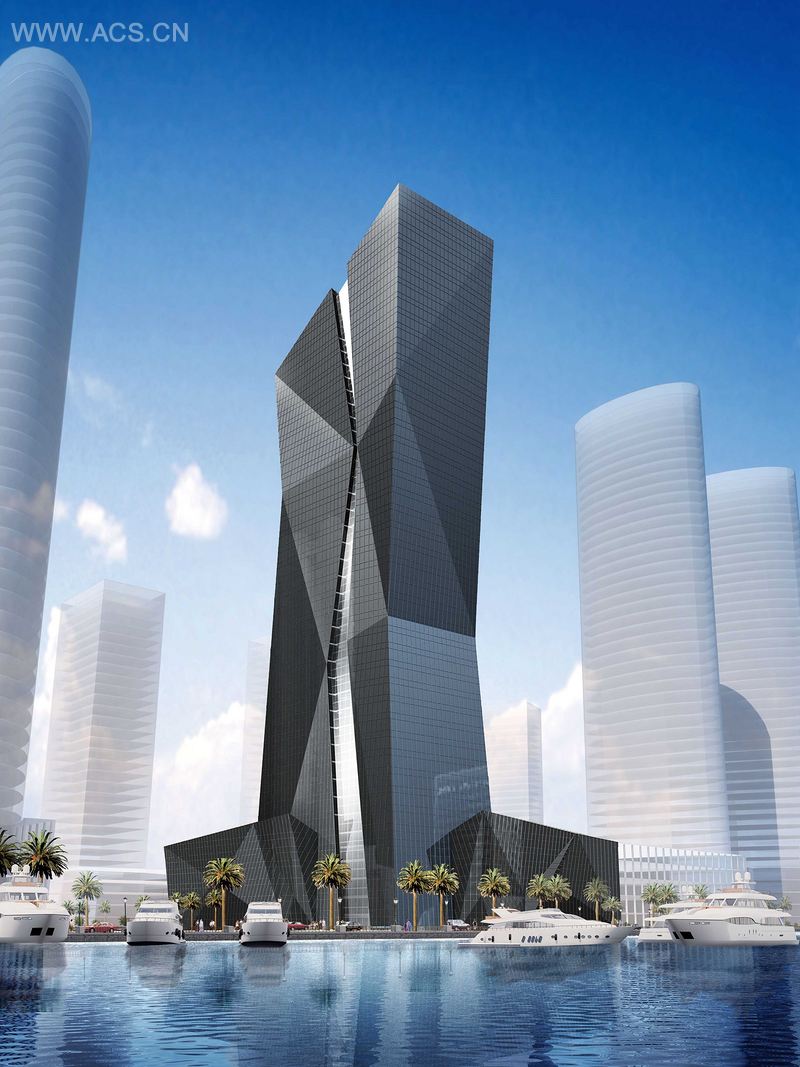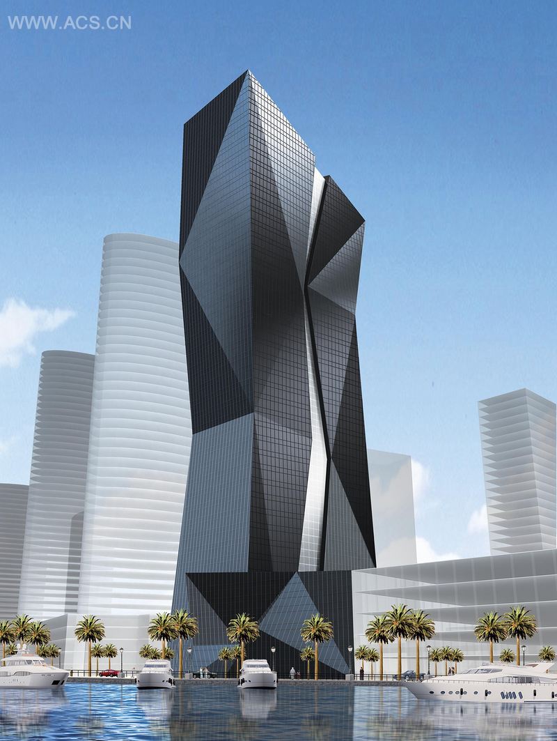占地面积10199平方米,37层高的写字楼位于迪拜海运城海港办公区#6。设计理念是以矗立在海港边的“水晶”造型打造一个独一无二的地标塔。这个新颖的水晶塔轮廓鲜明、优雅的和动态的外观,充满活力和动力。塔楼的外观通过精心设计,呈现这一理念,为了跟城市意境相符,塔的朝向是沿着艾哈迈德本马吉德道路的中轴线。该建筑各个方位的朝向就可欣赏到不同的景色,包括不同方向的水景。