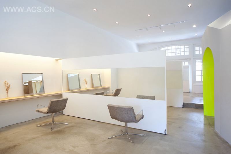 迅速发展的日本公司“Less is More”的最新分店位于新加坡中心享负盛名的来福士酒店中。非常现代化的布置融入宽敞的带有历史气息的空间,体现了年轻的日本发型师们的精神——他们来到新加坡,为这个热带国家带了“凉爽”的风格和理念。冰山造型主导着空间形态并将空间分隔成接待处、理发区和洗头区。在理发区,可旋转伸缩的支臂托着镜子,在不使用的时候能够收拢近墙壁,从而带来更宽敞的空间,用以举办一些活动或音乐会。