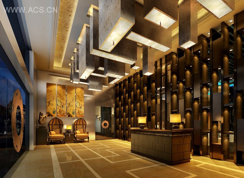 设计上舍弃了传统繁复的线条,运用了质朴、环保的材质,使客人感受到一种舒畅的心灵体验,美好的视觉享受。门厅的地面与天棚运用了呼应的手法,使空间彰显大气,给客人也留下深刻的印象。
