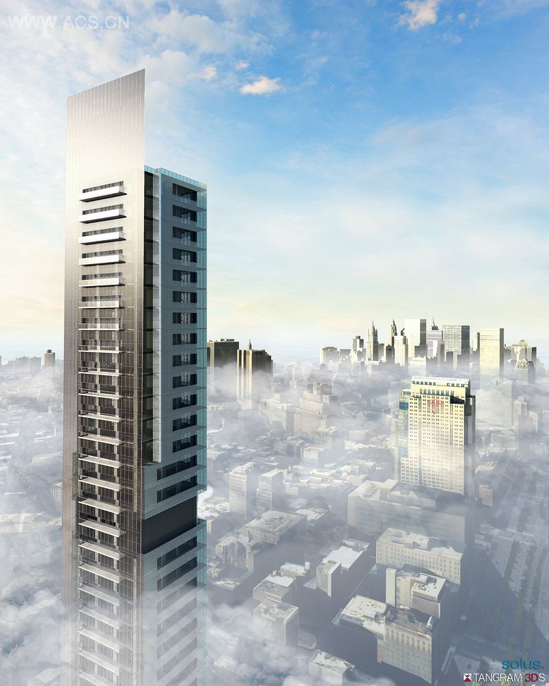 这座独特的标志性的950英尺高的住宅是solus4以SNCI(可持续社区协作计划)原则设计。将该原则应用于垂直社区要求设计组、建设组、资金组和业务的充分参与。这座塔的独特的形状来自其创新的结构和能量生产系统。整个结构体系由LeMessurier顾问公司设计。闪亮的外墙玻璃构成了最高的混合双层外壳,双外壳最初设计意图是为了提高热屏障,从而控制热量在夏季增加,在冬季热损失。微型涡轮机利用垂直空气运动产生辅助电能,每层楼的阳台在增加可变的遮光屏进一步控制日光和热增益的同时为居民提供外部空间,控制温度的窗户可根据个人喜好调节温度,在任何季节都能满足舒适性的要求。950英尺高的叶片悬梁是混凝土框架结构,它的整个外表以及覆盖在外墙某些部分的透明薄膜光伏电池板,结合其它可持续发展系统,将提供满足建筑需要的大部分电力。