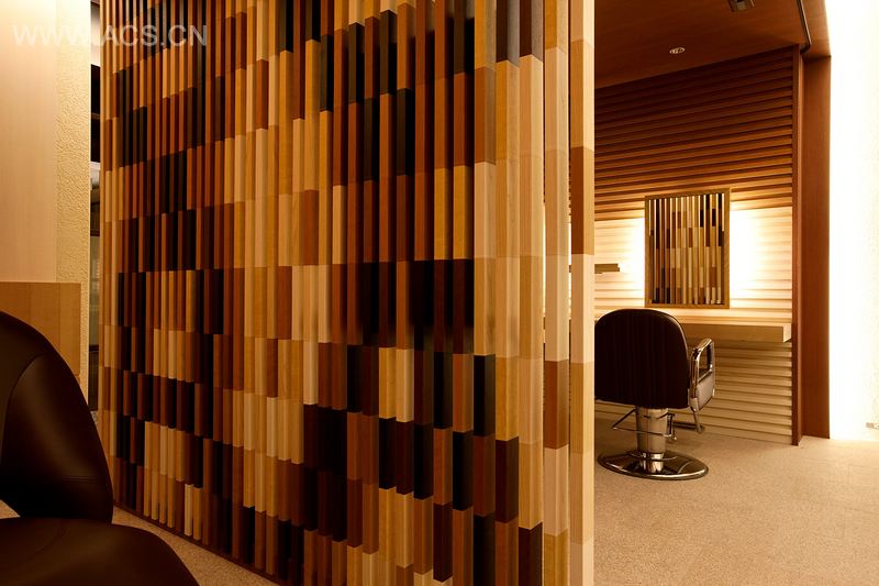 这个美发沙龙主要包括12根不同的木材。木材的颜色为整个空间带来了层次感和渐变感,就好像天空在一天内的颜色变换。这也是SORA最主要的特色元素。天空持续变化着,每季,每天,每时,每刻,从阳光灿烂到大雨倾盆,从云卷云舒到雪花纷纷,它有着无限的姿态。我们将SORA设计如天空般明亮,希望这个美发沙龙能够连结起空间、时间和人。
