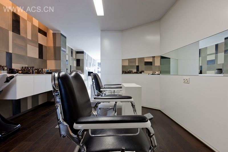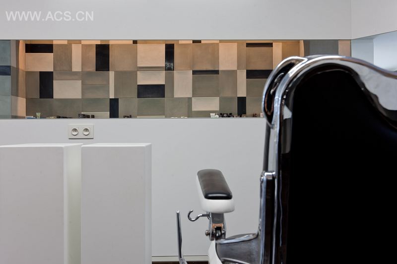 我们想要设计一个看起来并不像美发中心的室内空间,试着在工作区(白色空间)和等候区(金色空间)找到一个最佳的平衡点。我们想要一种LOFT的感觉。准备好各种材料,一切都需要满足预计的效果,将内部感觉诠释出来。美发沙龙是顾客休闲放松的场所。功能性非常重要。