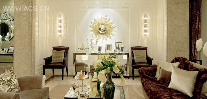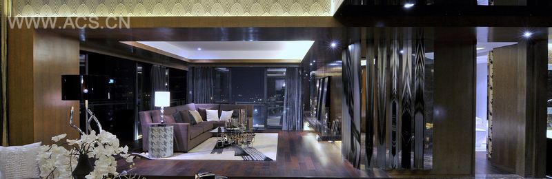 此尊贵样板间,是一所复式的现代化居所,坐拥无敌的闪烁景观,以大都会为主题,表现繁华都市的魅力,又不失高雅格调,华丽时尚的客厅,两层高的落地大玻璃,把城市的醉人夜景尽收眼帘,深色的线条,具备卓越品味,客厅与开放式的厨房,闪亮欢乐的派对气派,从首层到第二层的阶梯,展示精致的一面。二层设计尽显优雅的感觉,有简约风格的书房开始,一行排列的书架,反映出有趣的重叠景象,主寝室的设计充满和暖气息,时尚气派,如曼克顿的迷人风尚,展现无可抵挡的大都会魅力。