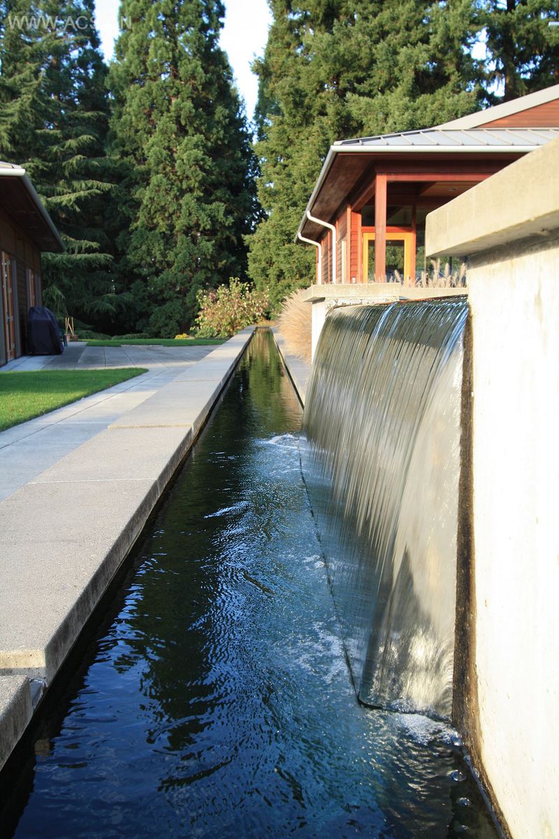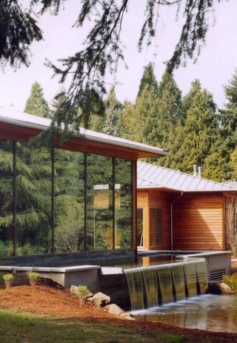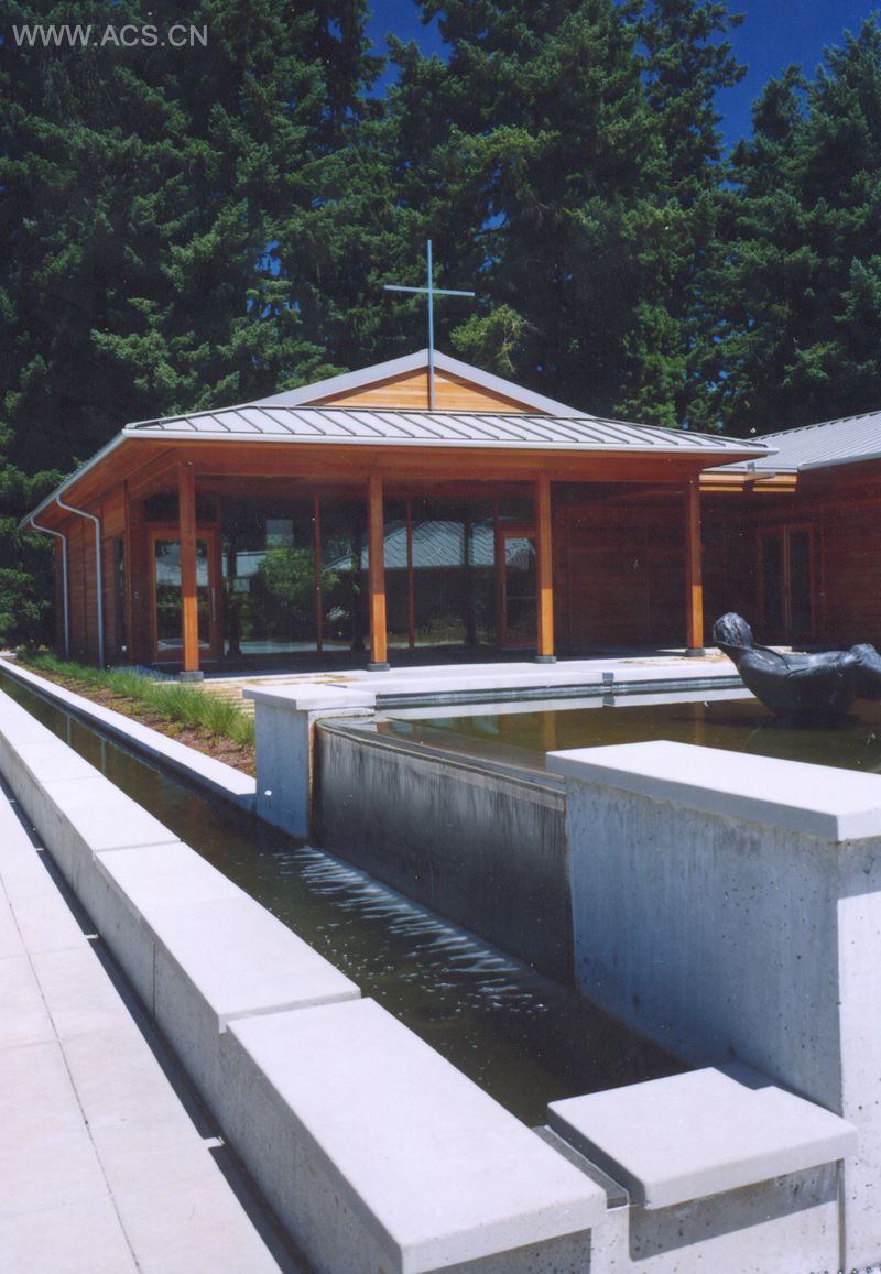 这个2.6公顷、位于美国俄勒冈州波特兰的园区在属于耶稣会(Jesuits)超过一个世纪的年岁中充当过多种多样的角色,而如今,它被当做一个静修中心依然存在着。在2003年,这个园区内原本的建筑被拆除,取而代之的是4栋新建建筑,作为耶稣会俄勒冈州省级总部。项目所在地北半部历史遗留下来的花园使得这里被指定为波特兰市历史资源保护地。Jesuits希望在保留下这个花园的同时能够为这4栋建筑——一栋办公楼,2栋住宅楼和一栋包含了礼拜堂和会议室的综合楼打造新园区。这个项目有着大量的景观种植以保证新旧和谐融合。与礼拜堂前方广场毗邻的水池是这个项目水元素的所在点,这里同时也是这个园区的精神象征。水池通过一条通道环绕着礼拜堂,礼拜堂后是一个大型的水坝。水流从水坝上倾泻而下,注入那处具有历史意义的花园角落的天然水池中。
