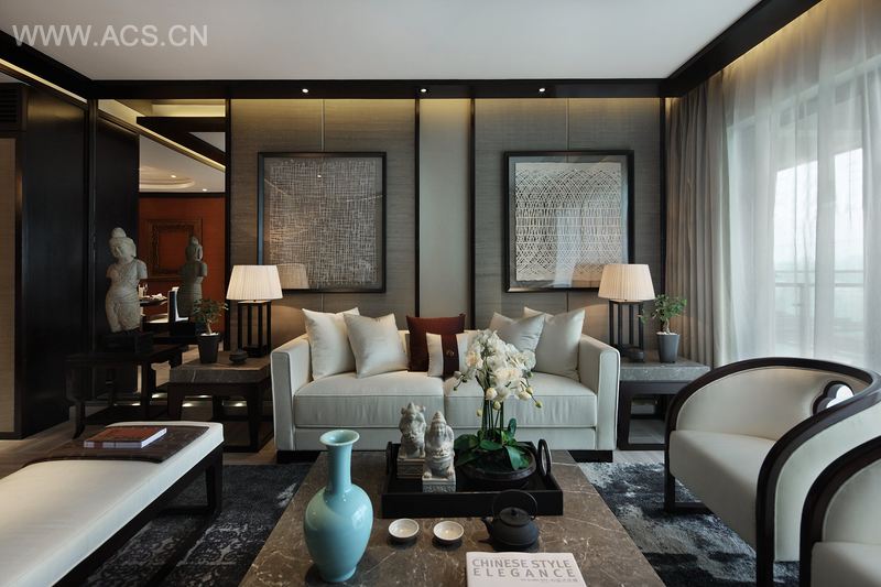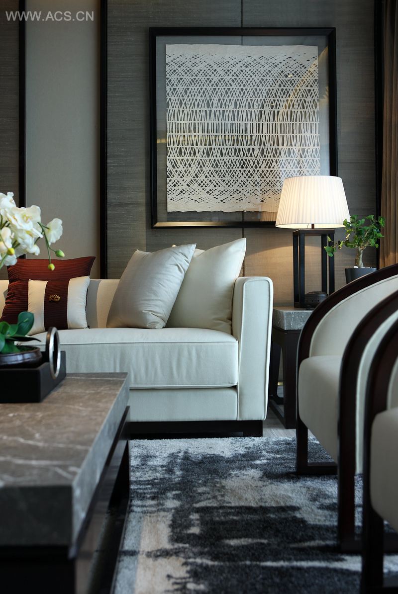 精挑细选的家具、古瓶、台灯、挂画、茶具、花艺,旨在体现出户主高雅不俗的文化品味。现代新中式的会客厅,早已退去了繁琐的表象,挥洒有度的笔触,不着痕迹地传达出中式的神韵。
