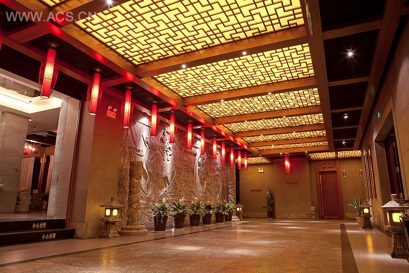 本案以唐代建筑和文化为主线,突出了唐代建筑的宏伟舒展,不论是外观还是大堂、前厅、走廊等,无不突出了这一特点。建筑是骨架,装饰文化是血和肉。将唐代的敦煌文化以绘画的形式镶嵌于墙面、天花板,一件件石雕、木雕、家具放置于合适的位置,本案浓重表达出了唐代无与伦比的浑厚文化。