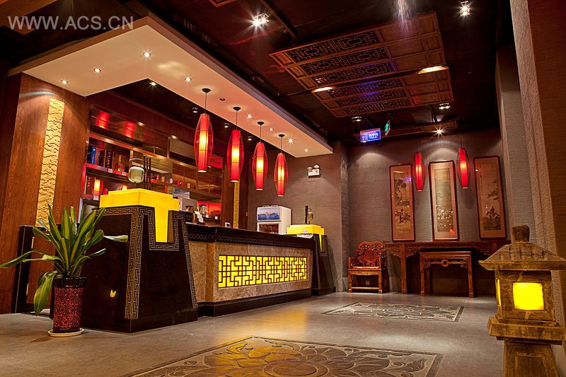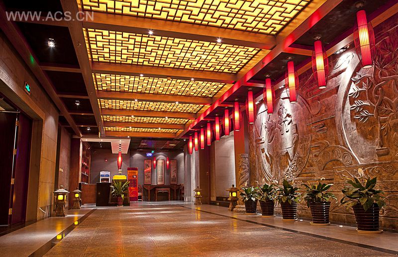 在功能上:一层是大堂、明档和海鲜池,符合交通流线;二层是普通包间和宴会厅,以里坊文化描绘了普通大众的生活;三层是豪华高档区,以帝王府邸的文化元素表达出富贵奢华的生活。