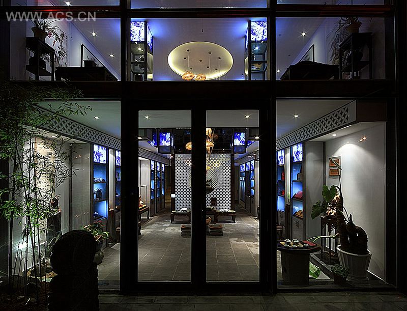 本会所平面方案设计引用了中式建筑中的“回”及“井”字构成,采用中轴线对称的布局,利用了中国传统的青花瓷元素来贯穿,色彩上采用了中国传统的青、白、灰来表现。会所功能上融入了茶、瓷、石、字画、根雕、古玩等艺术品的品鉴及销售功能,也结合了休闲、会谈、会议等商务功能,力求营造个有东方文化底蕴的、时尚的商务文化会所。