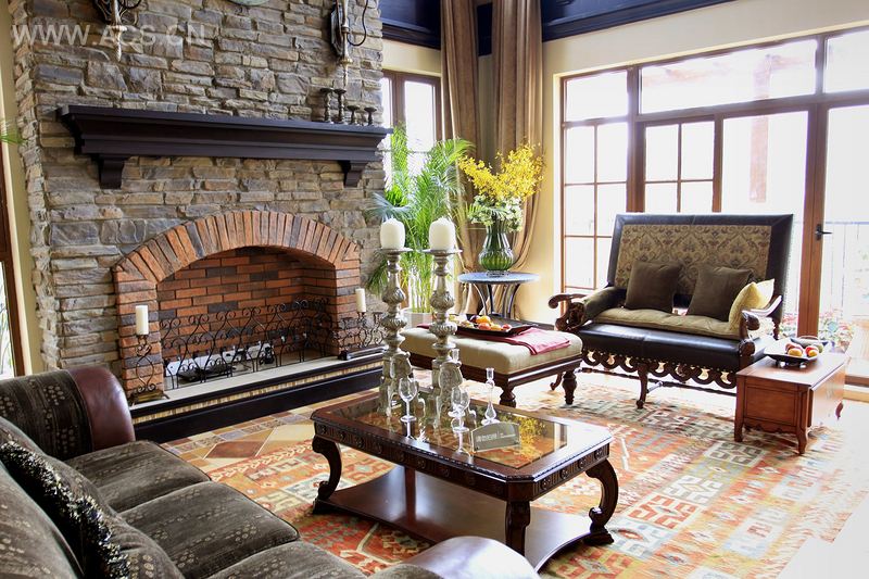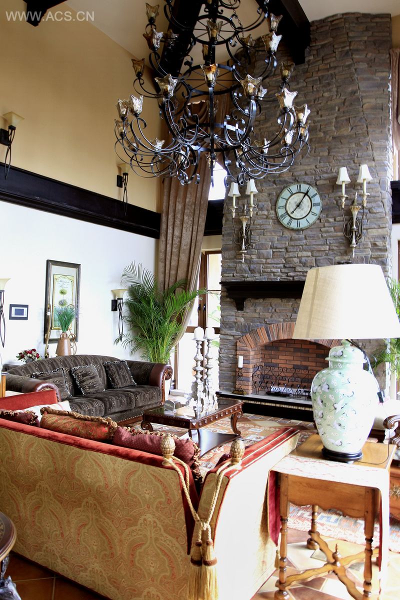本案例的设计风格为弗朗明哥西班牙小镇风情:一首弗朗明哥的卡门,牵动着人们的心绪让人们完全感觉出西班牙的神秘、内敛、沉稳、厚重,热情洋溢,自由奔放,色彩绚丽。突出表现艺术与文化,浪漫与自然的家居风格。拱形的造型增加视觉变化与穿透的美学。西班牙式的座椅,让空间既休闲、舒适,还不失高贵气质。客厅上空高悬的铸铁吊灯、色彩浓烈的地毯,都散发一种古朴、典雅的气息。桌球室休闲式设计要求生活的空间自然、舒适、休闲、随意,但同时要富有内涵,不能缺少内在气质。质朴的壁炉,拱形的结构,配合盘旋而上的楼梯,古典的氛围将空间点缀得十分雅致大气。整个空间一种浓浓的异域风情色彩跃然眼前。设计师在客厅墙上设计了壁炉,成为客厅的点缀,客厅壁炉运用大自然原始的红砖,暗示着自然质朴的生活,给整个空间带来了强烈的视觉冲击效果。常用地面拼花铺贴墙面、地面营造出不同功能区的情调氛围。家具与软装饰古典精致,处处露出脱俗的品质。弗朗明哥西班牙小镇风情,空间的合理性与完美性得到了恰如其分的融合,每一处设计是它所恋恋不舍和难以忘怀的生活体验。西班牙崇尚奔放的情怀,浪漫与自由是它的理想。