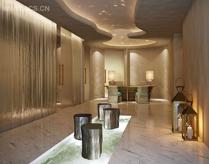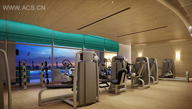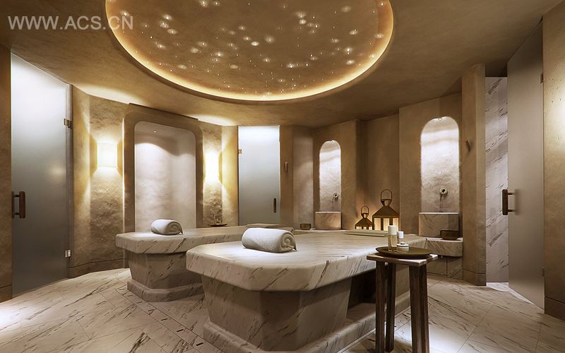 水疗馆的面积有1500平方米,除了理疗区,另有健身中心,设有男女混用健身房、女士专用健身房、瑜伽室、淋浴体验室、桑拿蒸汽室以及豪华休闲区。