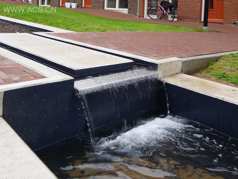 公园的一个重要部分是中央地块之间的浅带状水流,流水顺着多个水景流下。公园里的水给人一个印象,这是一个生活和放松的黄金位置,并反映了新公园所追求的高品质和氛围。