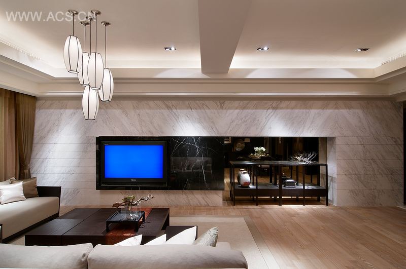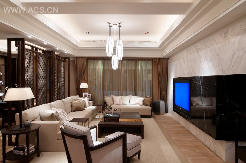 在本案中,设计者大量运用传统的中国空间语汇,如屏风、灯笼、桌几、织品、花艺、瓷器等装饰性语言,撷取其精神与内涵,做线条或象征上的改造,重新陈列设计,在空间中互动融会,铺陈出全新的中式风格空间。