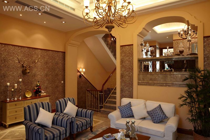 西班牙是典型的地中海式风格,热情洋溢、自由奔放、色彩绚丽,与其他地域不同的是往往更带有一种阳光与活力、自然。设计师将西班牙风格融入到别墅中,打造出一个六口之家的生活空间。